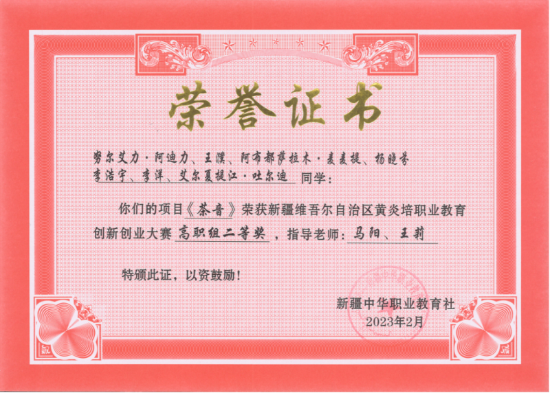 7 | 2023年 2月 | 新疆维吾尔自治区黄炎培职业教育创新创业大赛中职组:茶音 | 自治区级