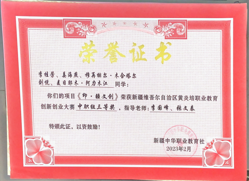 6 | 2023年 2月 | 新疆维吾尔自治区黄炎培职业教育创新创业大赛中职组:印·疆文创 | 自治区级