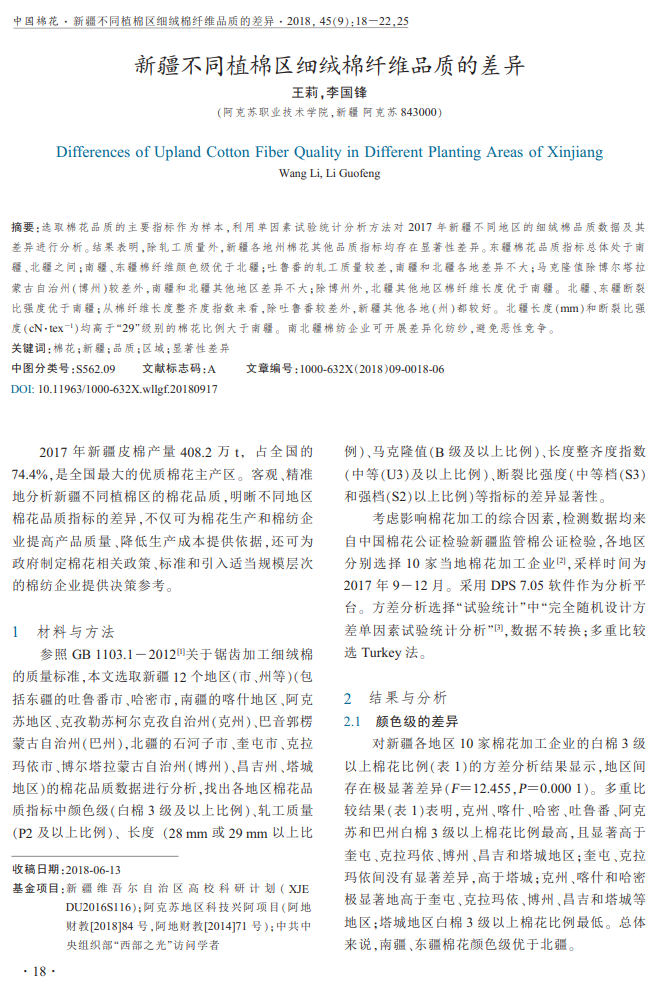 2.新疆不同植棉区细绒棉纤维品质的差异