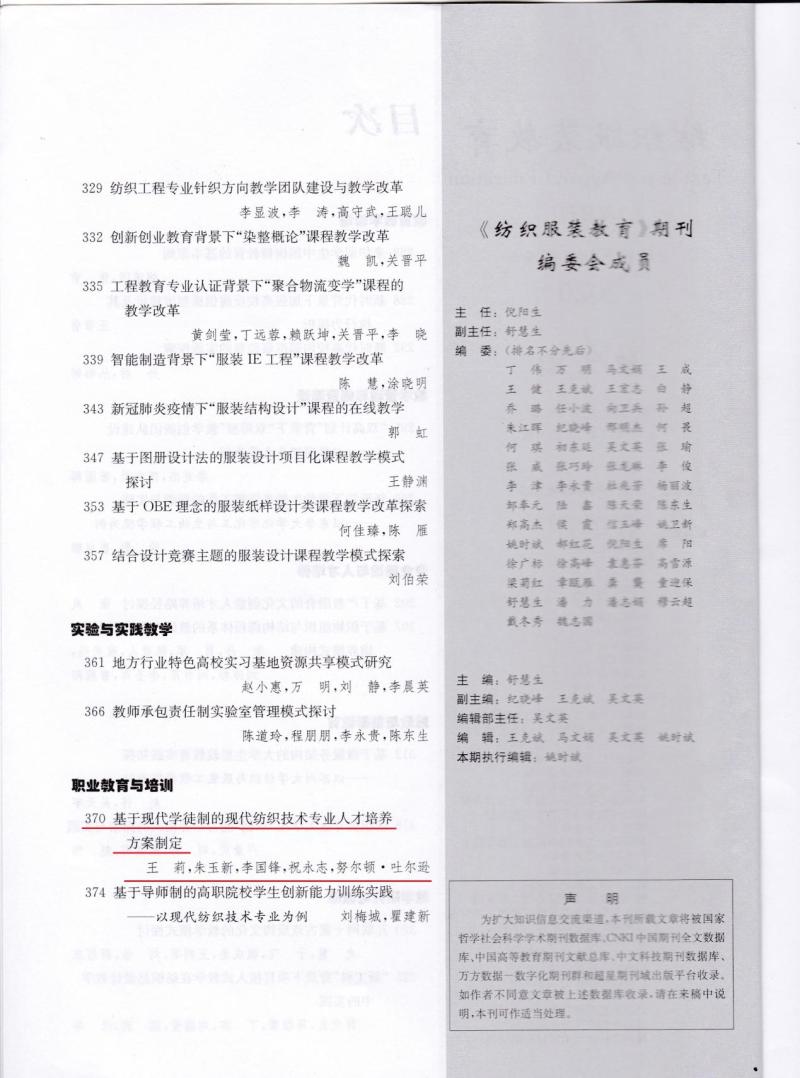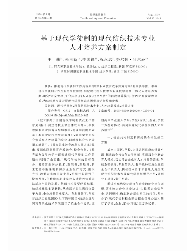 5.基于现代学徒制的现代纺织技术专业人才培养方案制定
