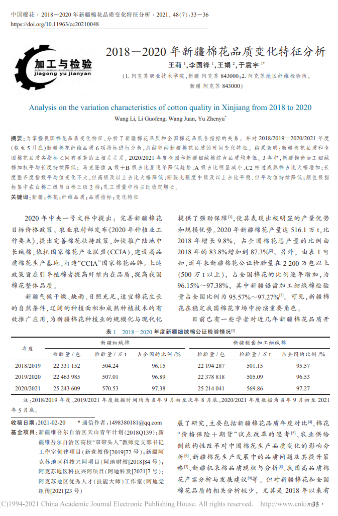 6.2018-2020年新疆棉花品质变化特征分析