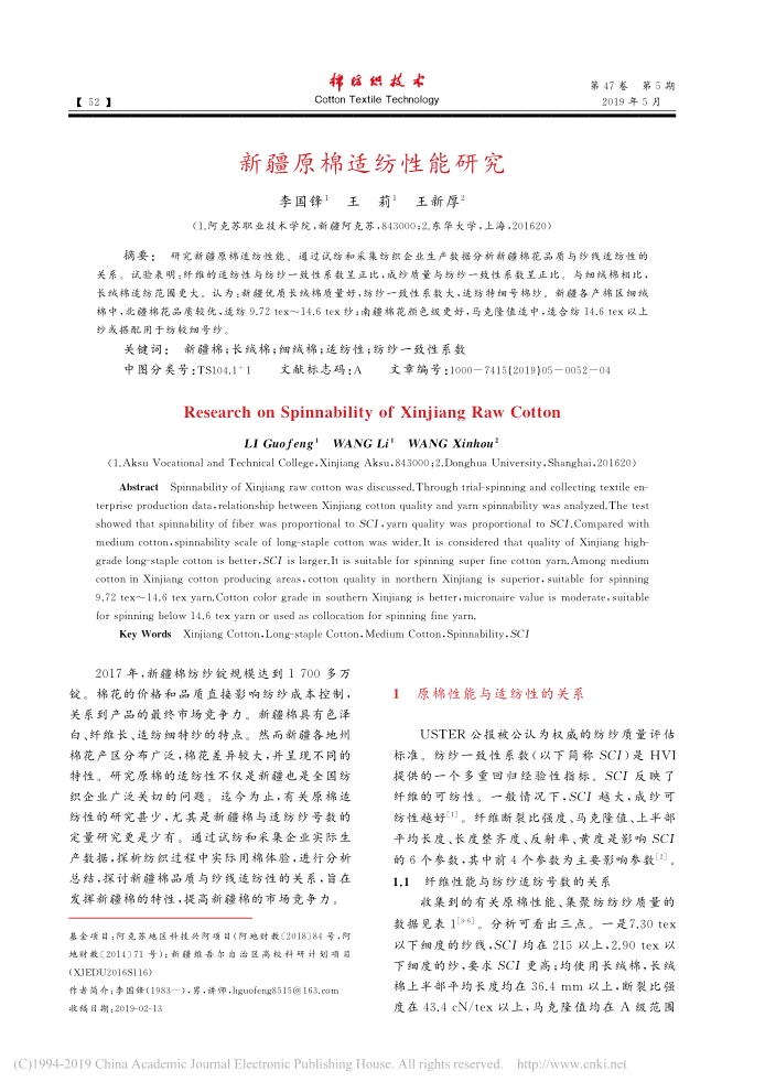 3.新疆原棉适纺性能研究