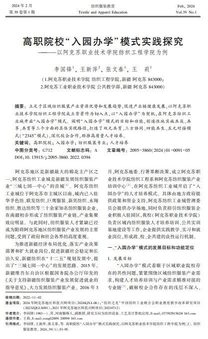 阿克苏职业技术学院纺织双带头人