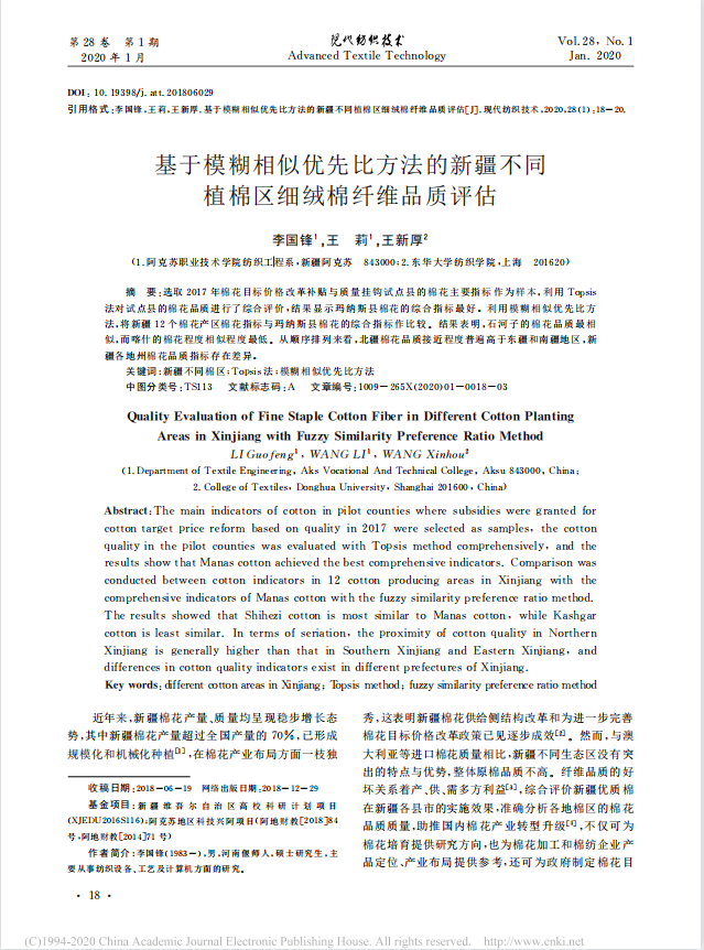 4.基于模糊相似优先比方法的新疆不同植棉区细绒棉纤维品质评估