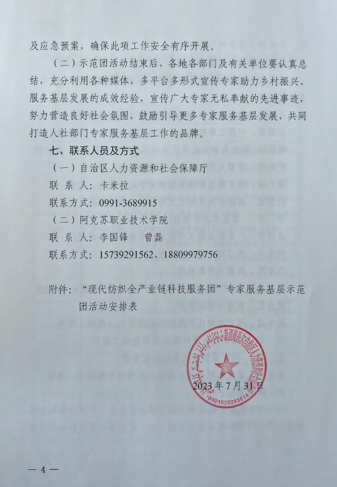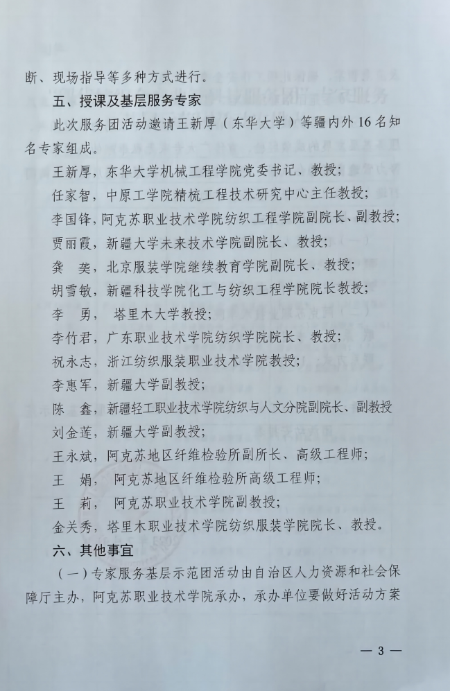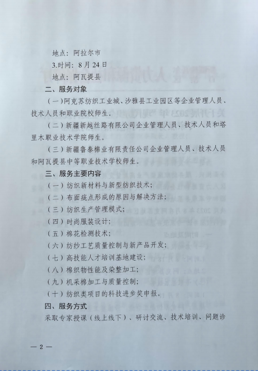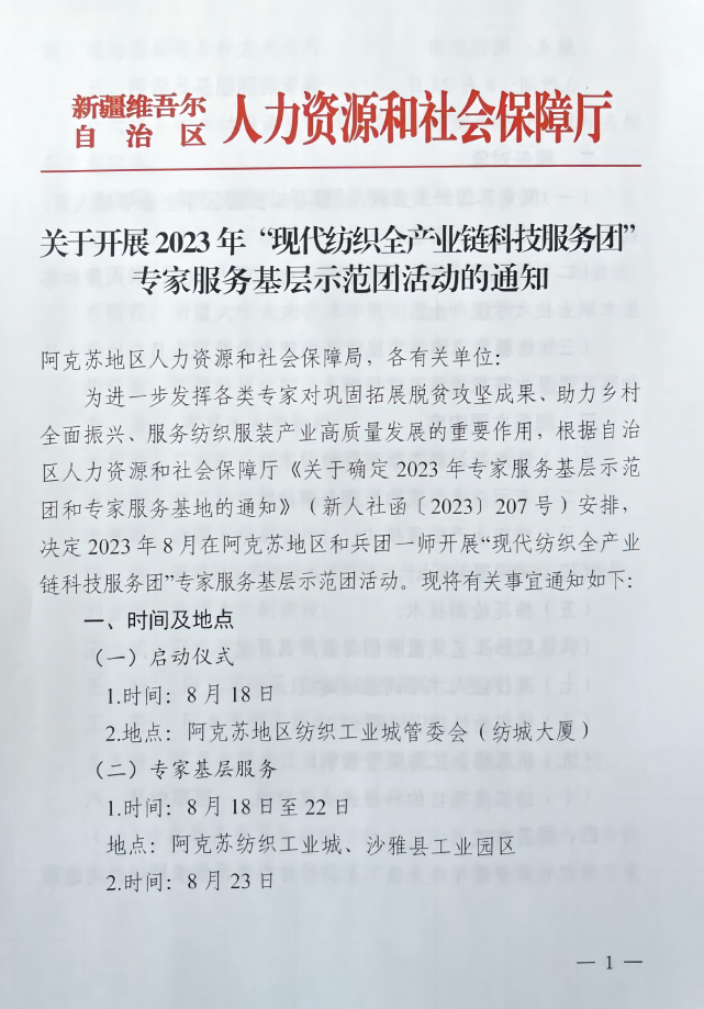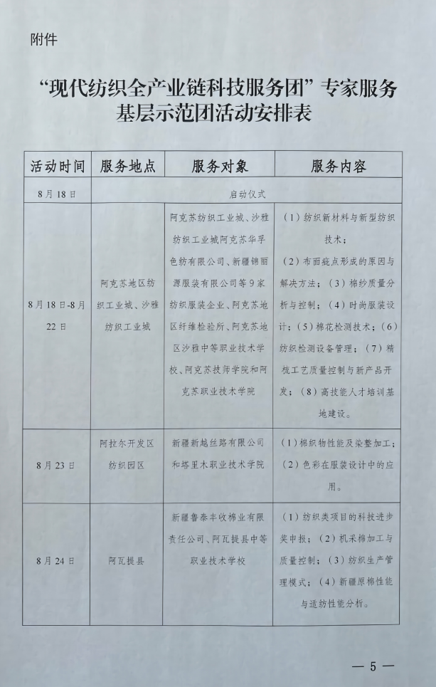 1.“现代纺织全产业链科技服务团”专家服务基层示范团