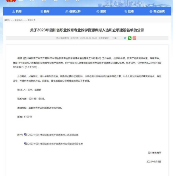 2.关于2023年四川省职业教育专业教学资源库拟入选和立项建设名单的公示