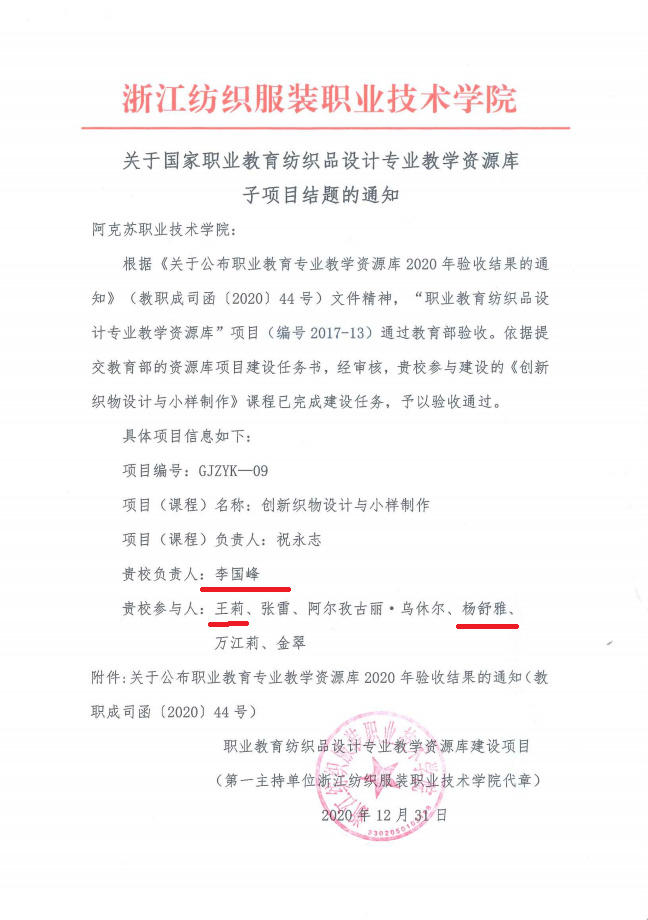 1.国家职业教育纺织品设计专业教学资源库子项目结题
